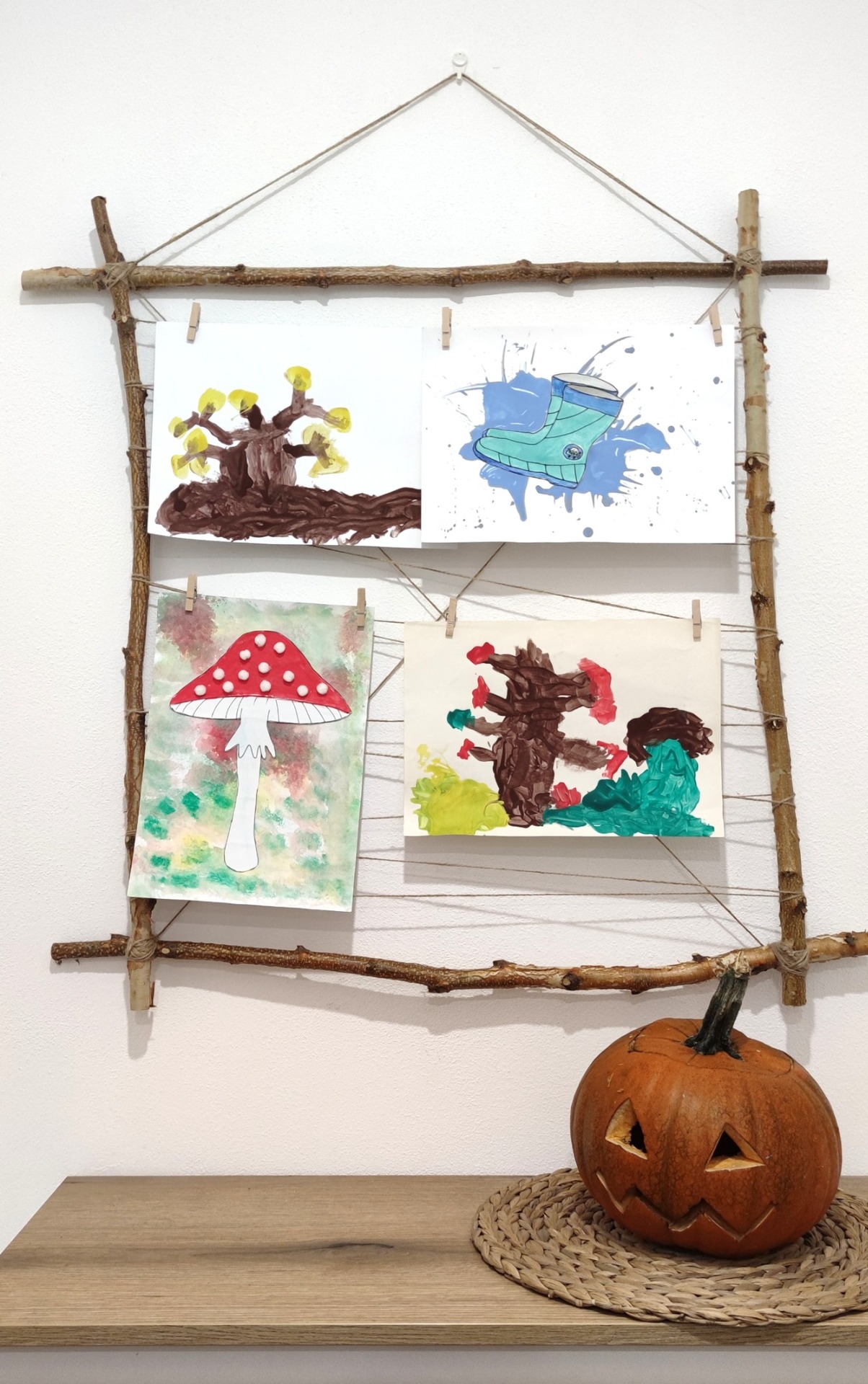 Doma jsme měli malý nudný prostor. Dlouho jsem tam chtěla pověsit nástěnku, ale klasická nástěnka unifikovaných rozměrů se mi tam nelíbila. Co s tím? Jedna procházka v lese nám to vyřešila. Pojďte si s námi vyrobit vlastní nástěnku z klacků a udělejte všem milým dětským výtvorům i vzpomínkám krásný přírodní rám(ec).